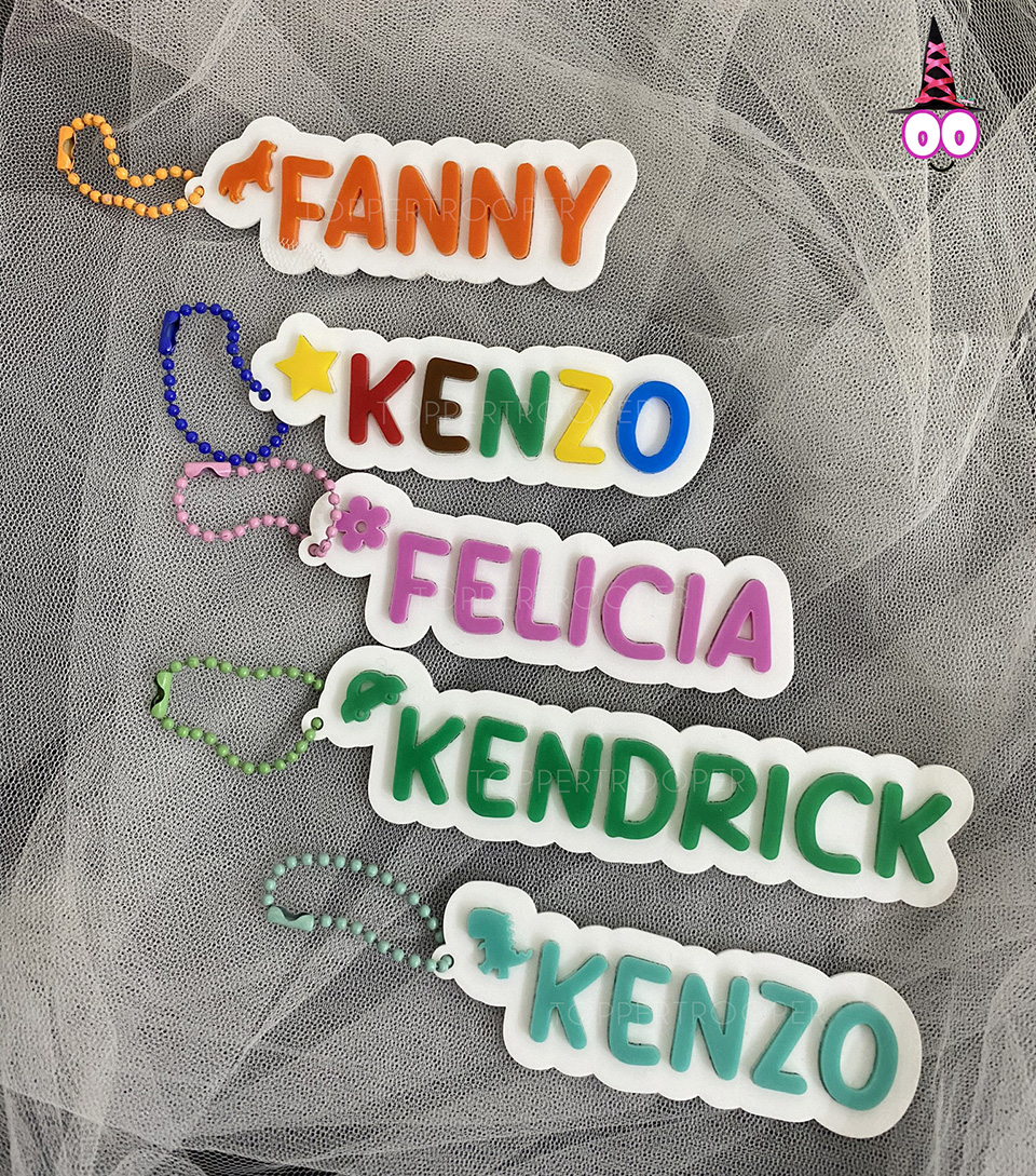AKRILIK 6mm – TANPA MIN ORDER – Gantungan Kunci Akrilik Custom Nama | Luggage Tag Tas Bekal Tas Les | Souvenir Anak Ultah Hampers